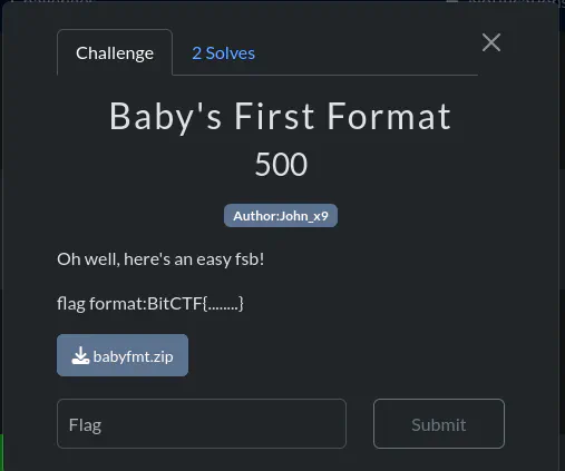 baby_fmt: ELF 64-bit LSB executable, x86-64, version 1 (SYSV), dynamically linked, interpreter /lib64/ld-linux-x86-64.so.2, BuildID[sha1]=0e903b516c692c7b0a17a55e4dd226448c453a56, for GNU/Linux 3.2.0, stripped