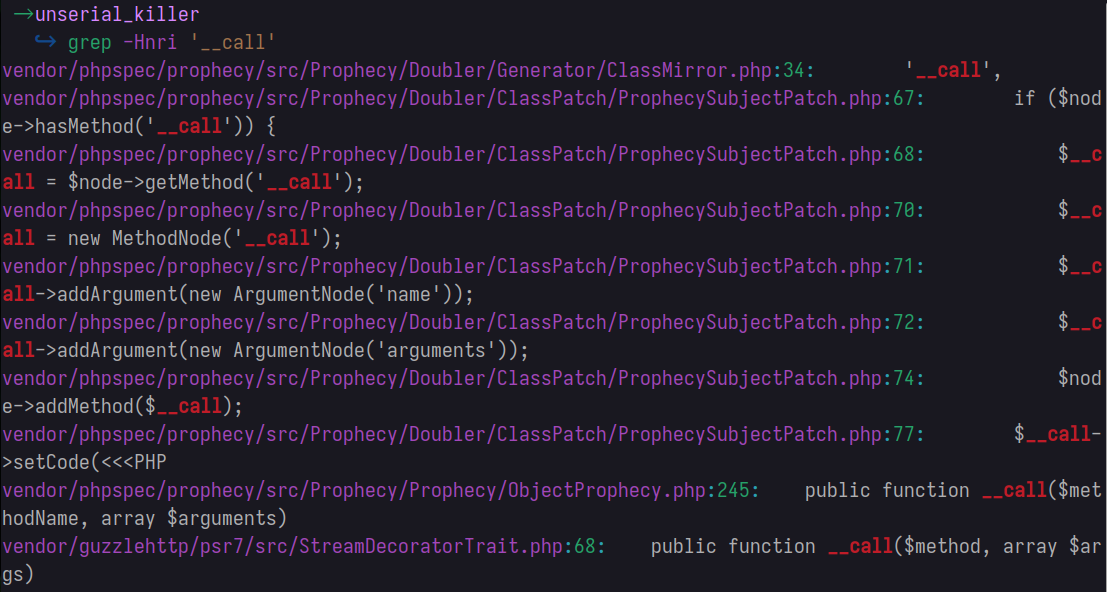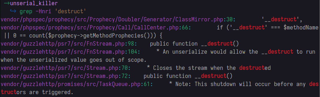 Since the application is vulnerable to an insecure deserialization vulnerability, let’s look for __destruct calls.