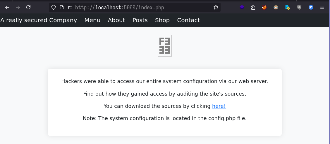 Viewing the challenge instance, we find the following page where we can download the source code for the application.